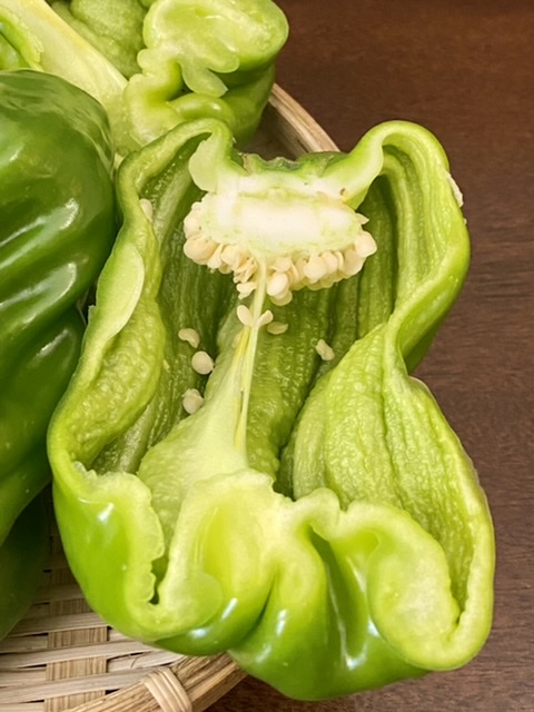 这个麻椒外形和大小都和中国柿子椒接近,比前面的马椒短一点,辣,还相当辣。
