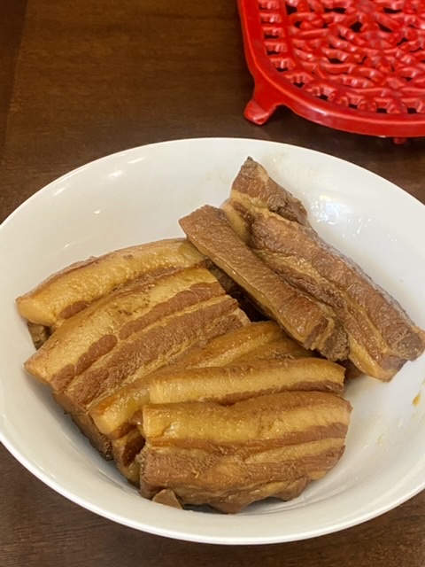 猪肚肥厚的部分,剪掉一些油脂,加酱油香料,放高压电饭煲卤一个程序,就非常软烂。
