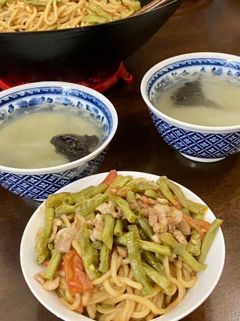 用的韩国拉面,因为细阳春面就一包,我怕不新鲜、买了堆了一堆的韩国面。