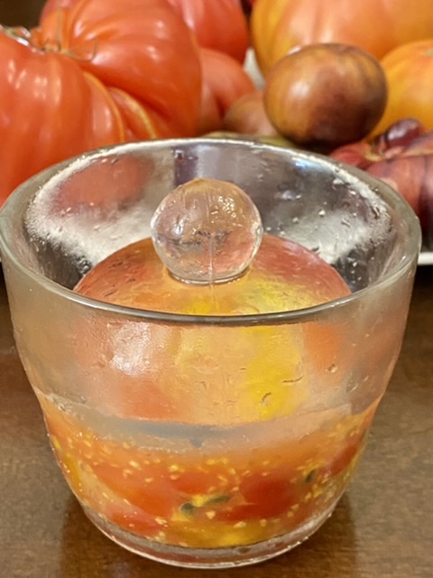 学个新菜,是小番茄过热水去皮,百香果腌制。不用油盐糖。