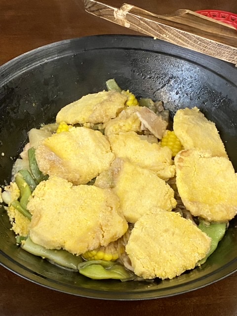 揭盖玉米饼没熟。