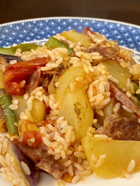 这种腊肠先蒸,最好切片蒸,这样里面的白油能化,盐味也带出来一些,做烩饭不会太油。
