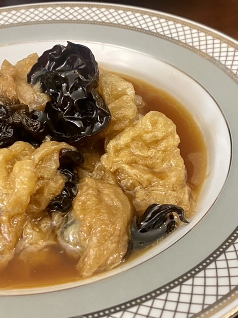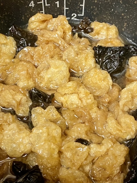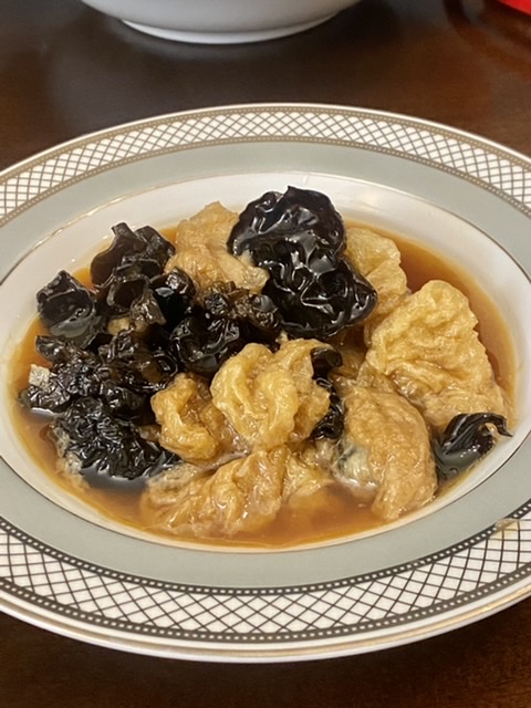 木耳和面筋块,放酱油,油,糖,水,电饭煲做就可以了。