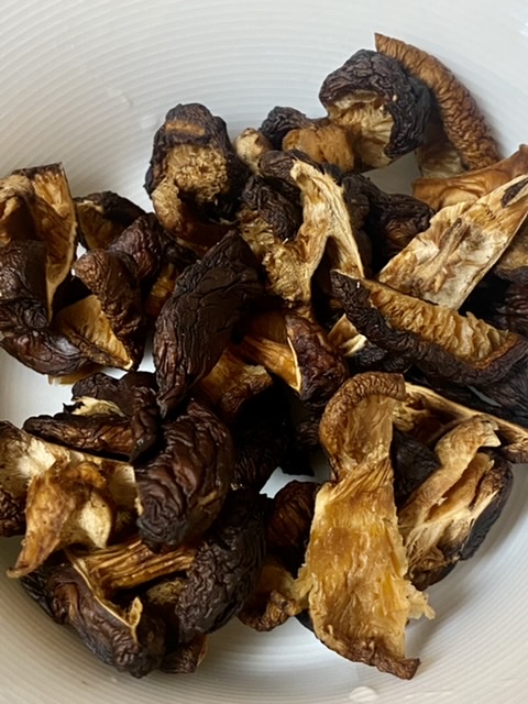 这个香菇实际上冲水以后,放在一边,它自己就润开了,不用泡。