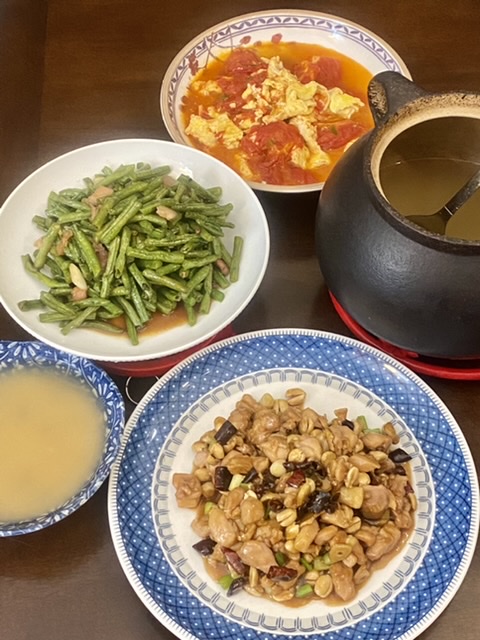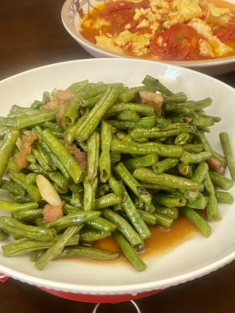 调料:干辣椒和花椒先下,辣椒糊了。有糊香味。不喜欢花椒可以先下,然后铲出来。