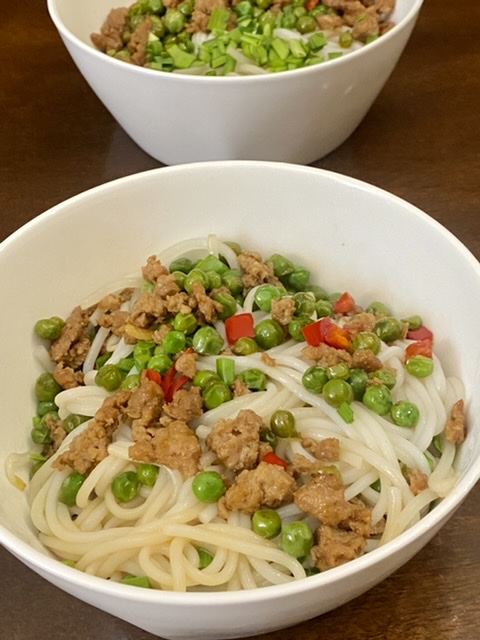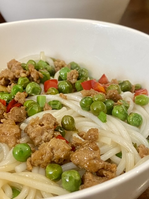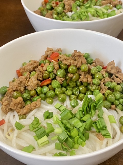 省事,煮的云南白米线。炒一个豌豆肉末。