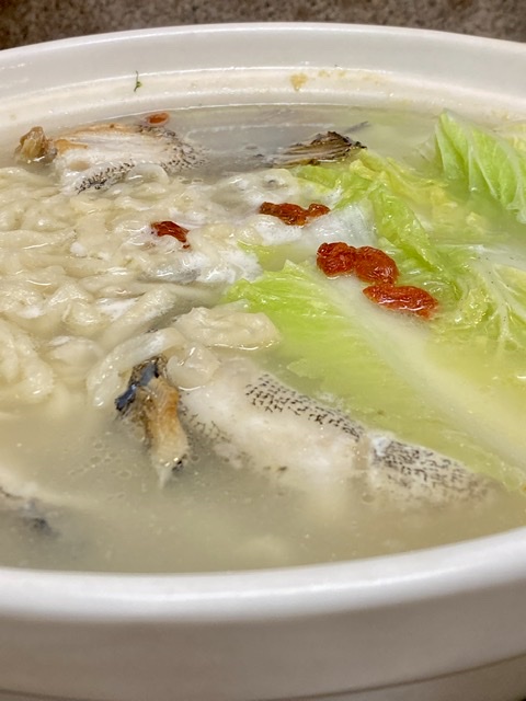 可以豆腐白菜鱼汤,但我今天煮面条,所以不宜放豆腐,会乱糟糟不好看。