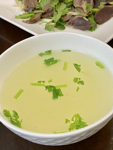 白胡椒粉、香菜,一碗鸡汤下肚,满头是汗。
