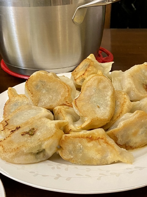 这个馅就是黑豚猪肉馅,加盐、水,打出黏性,加韭菜,加黑豆酱油、香油。