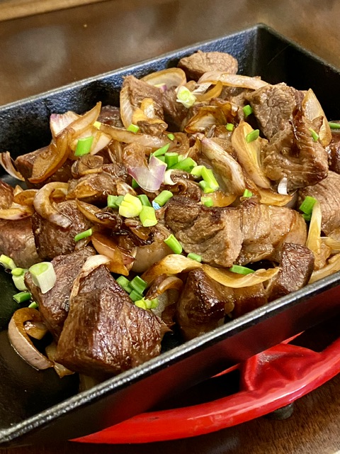 放烧热的小铸铁锅里,模仿铁板。