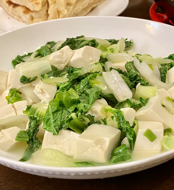 六面煎。加些小洋葱,撒点盐,出锅前淋一点黑豆酱油。