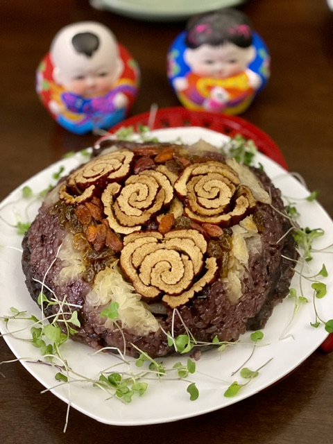 八宝饭的摆法大家都知道,我也没摆好看的队形,就是随意放了些枸杞和葡萄干,