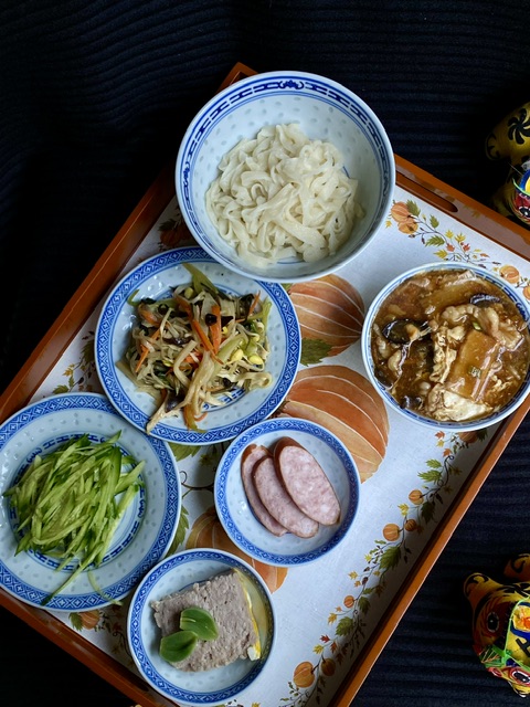 天津,是一桌捞面席,除了打卤面,还有四个热菜。