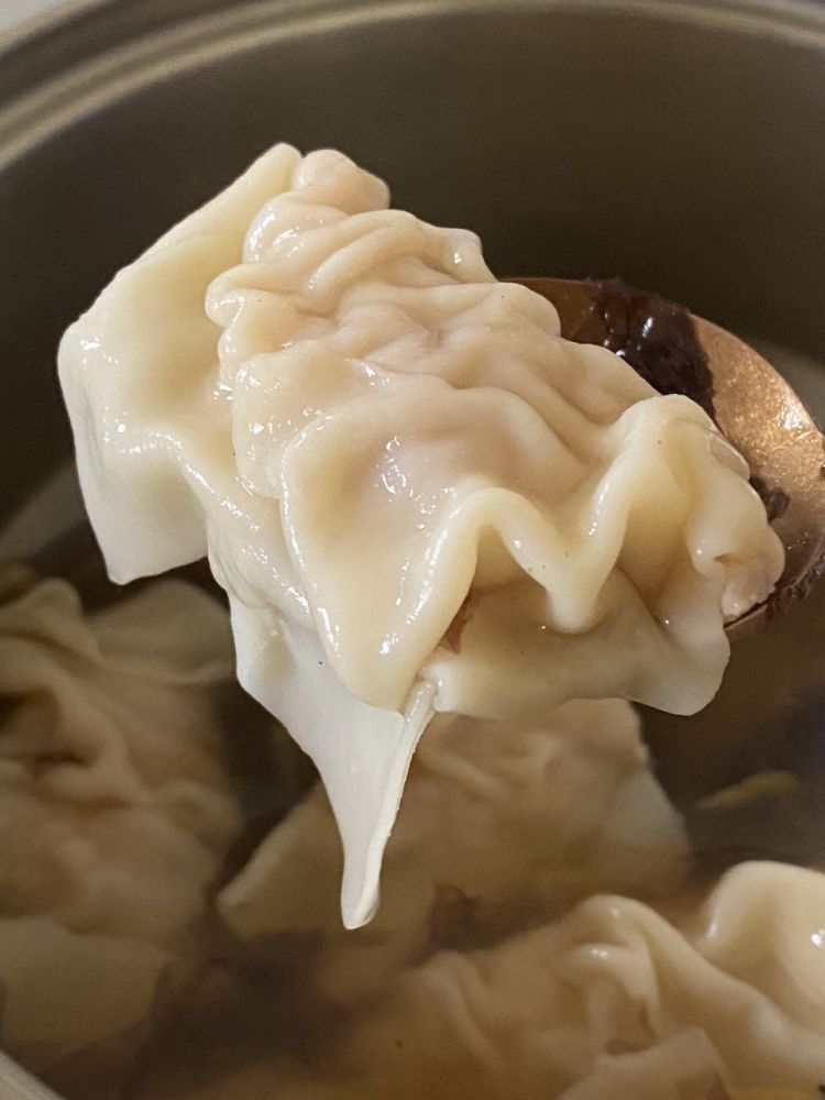 我回来了,没东西吃,煮了馄饨,是两种,猪肉的,和鱼皮的(以前福建店买的),就放的紫菜和虾皮,米醋,酱油,白胡椒粉。家里没有香菜。