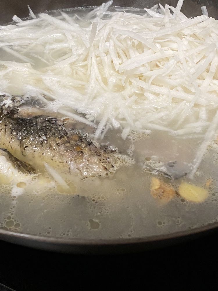 鲫鱼有两条,一条用萝卜丝,豆腐,熬鱼汤。