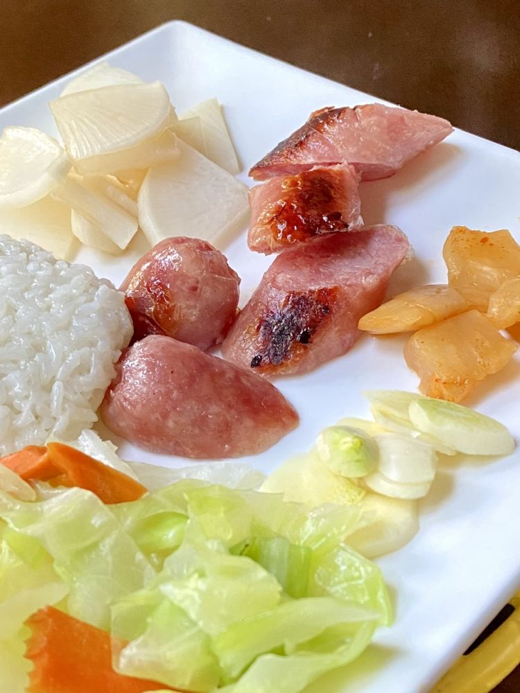 我今天是直接放电饭煲,跟米饭焖熟。再用平底锅小火烤一下外皮。