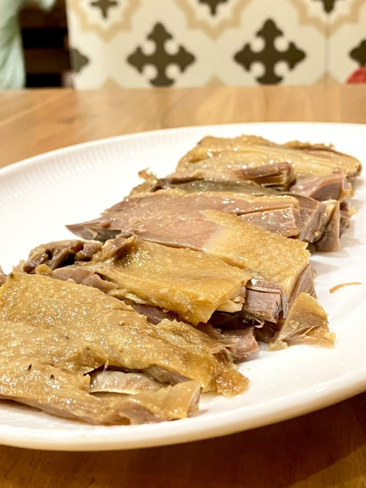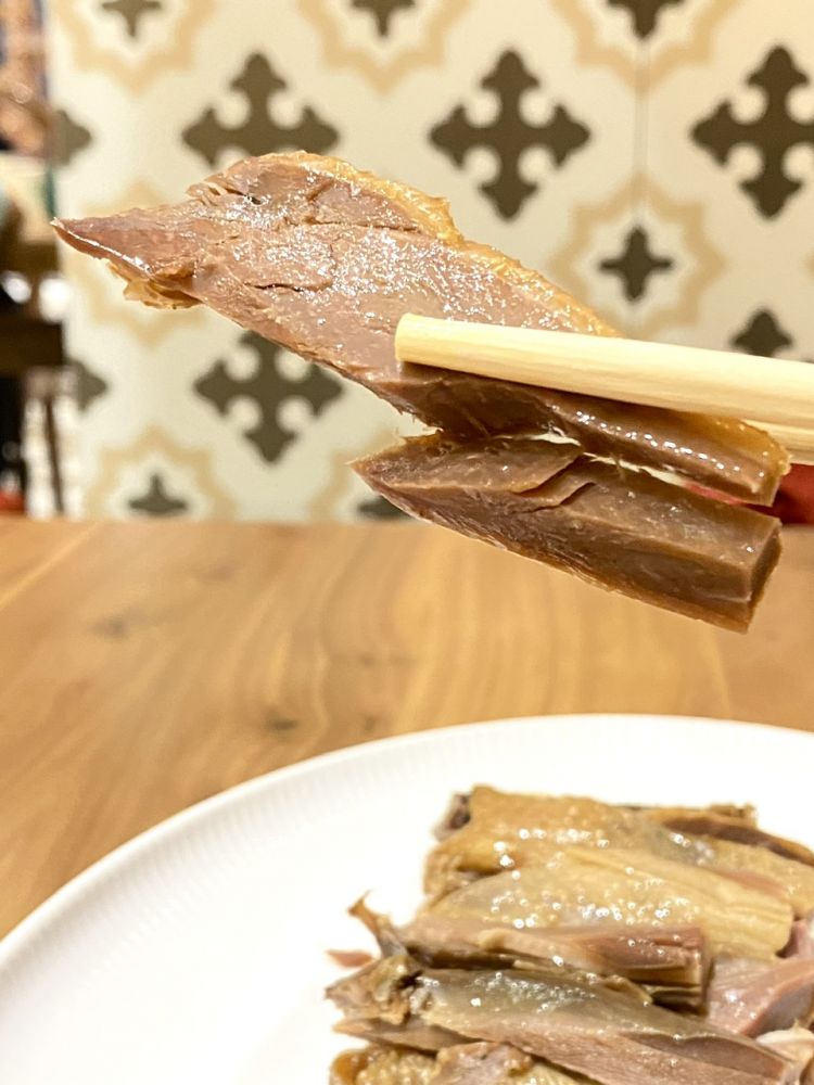 比盐水鹅稍微劲道一些。挺好吃的。吃不完,我打包了,放酒店,早上早餐时我带去喝粥。