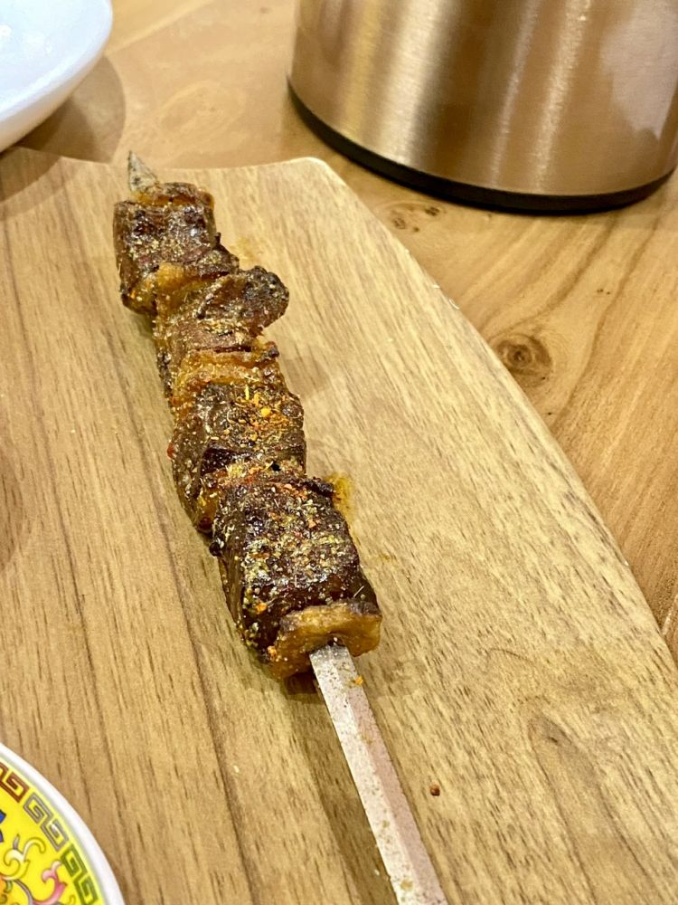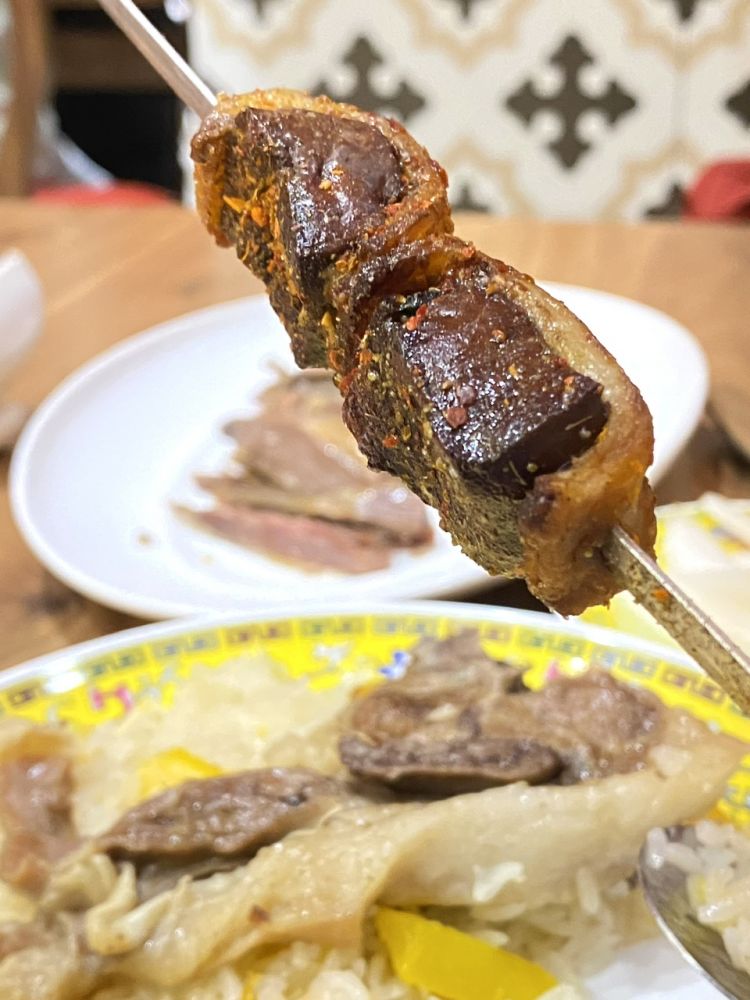 油包肝。肝子其实没有那天羊肉馄饨的烤羊肝嫩。也是可以理解,包了油,要把油烤出来,火候自然长了。