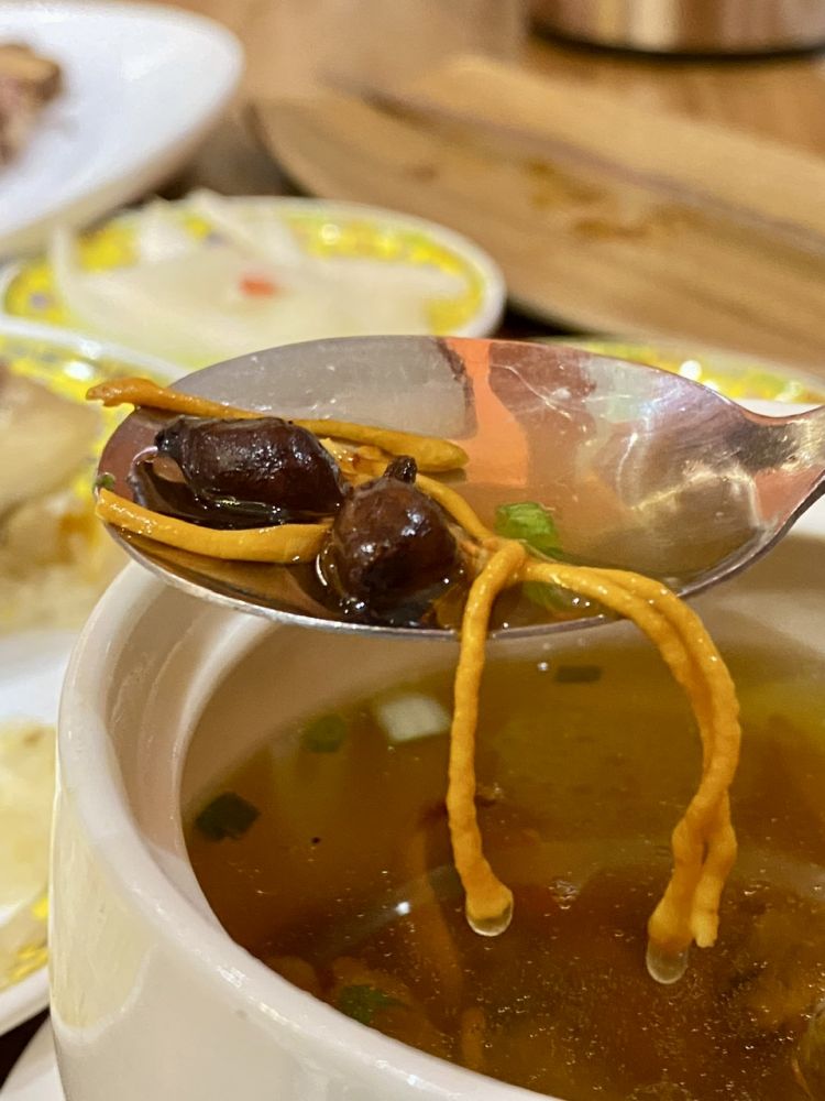 蕨麻鸽子汤,一小盅的。