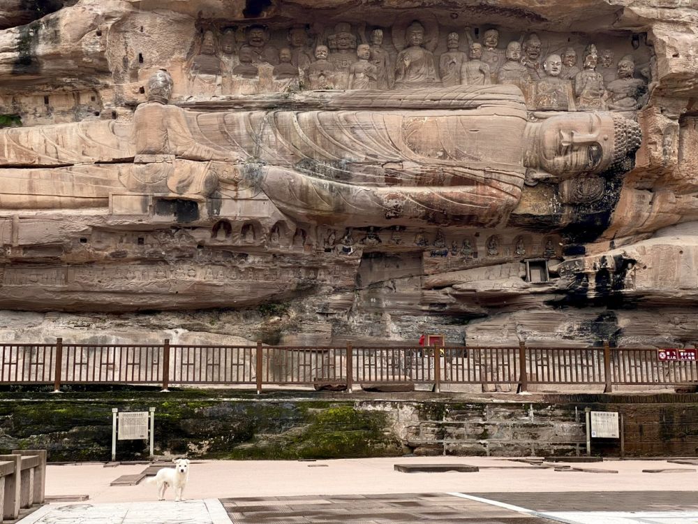 在安岳卧佛院,人少,有一度广场上只有我们两个人。
