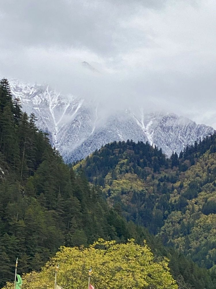 不过爬上去的回报就是可以看到诺日朗瀑布的全景,河流和远处落雪的山峰。