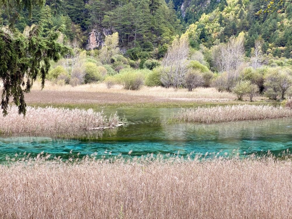 九寨沟的水到此开始流得缓慢。芦苇海。