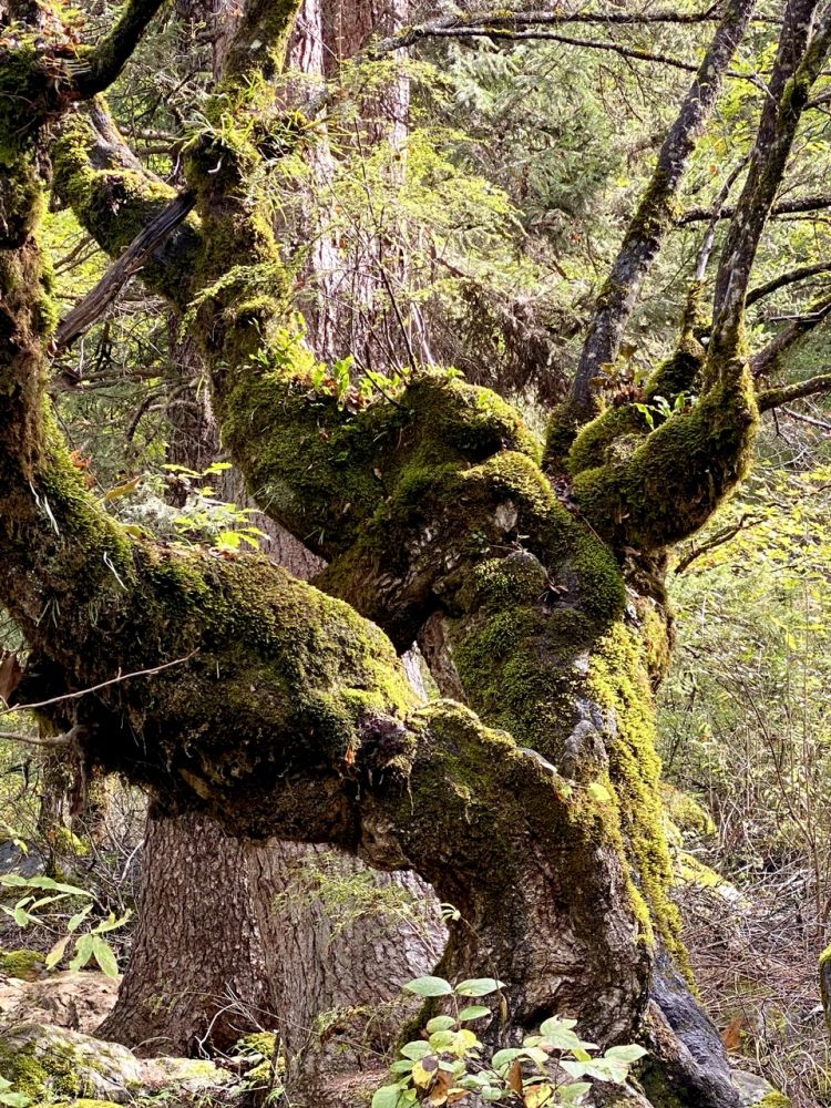 因此我们是坐到箭竹海,徒步下来,沿着箭竹海边,头晚有雨,高处有雪,早上云雾缭绕,宛如仙境。