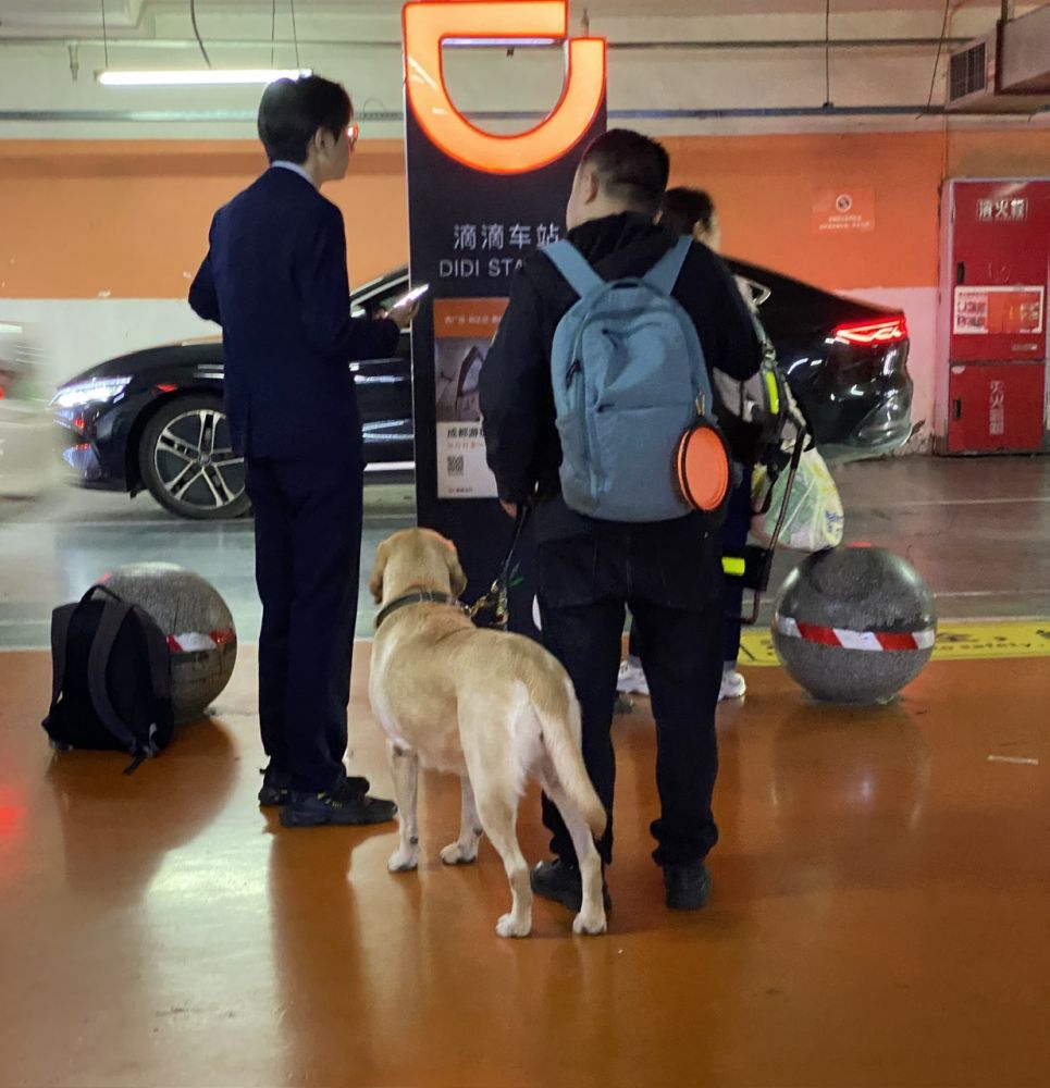看到导盲犬和盲人等网约车。