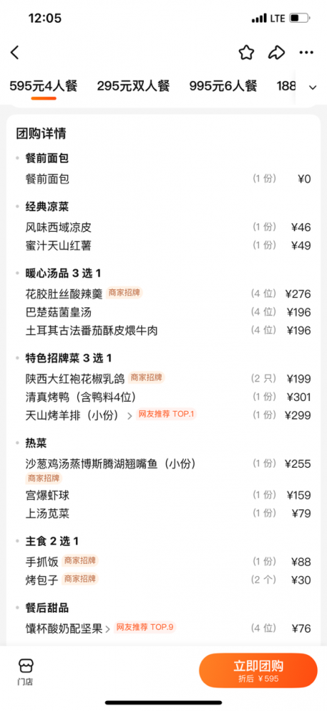 团的4人餐,同学账号还有一些折扣,最后等于530多。