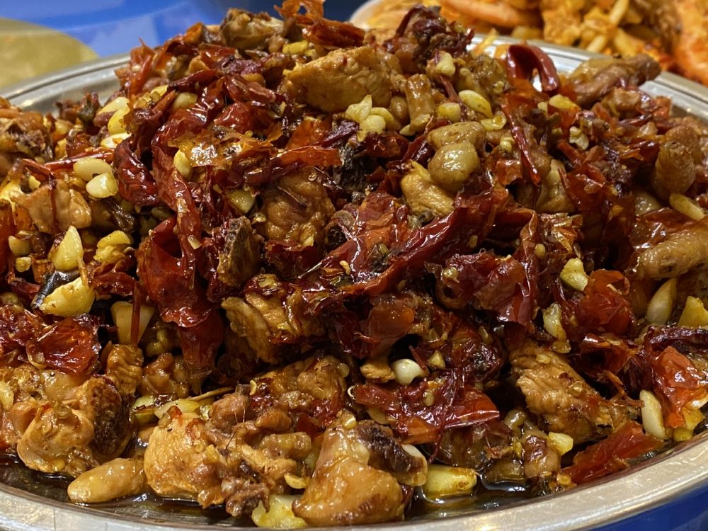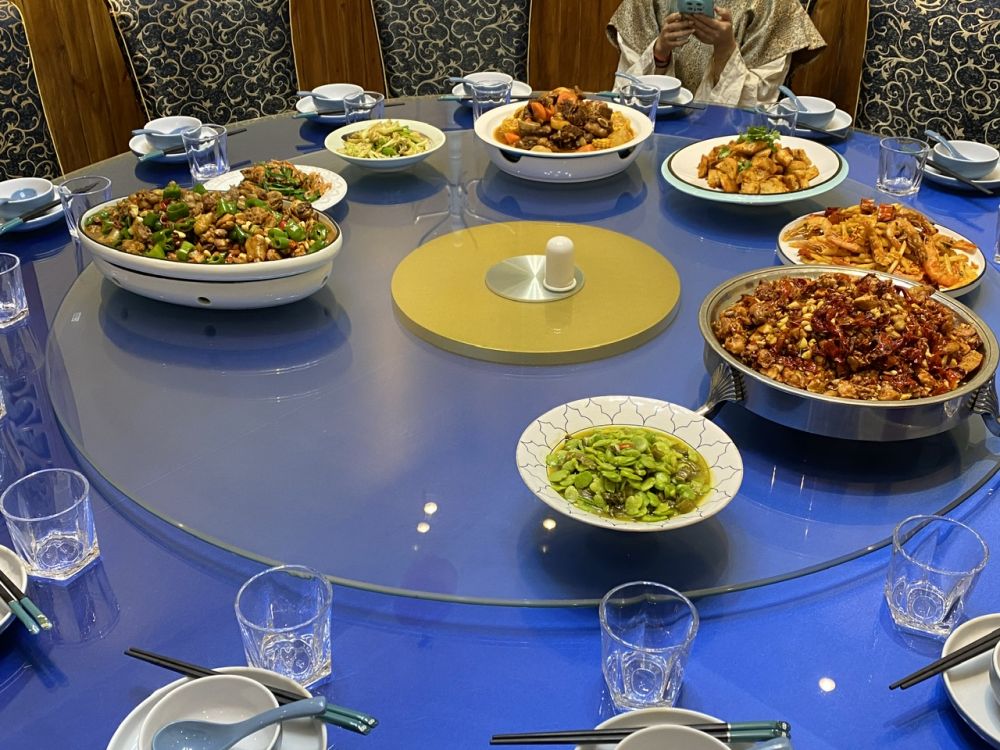 这几天中午都是团餐。我们这个领队带去的都是他爱吃的,这个库尔勒的辣子鸡店,鸡肉比乌鲁木齐的香,是用的芦花鸡。