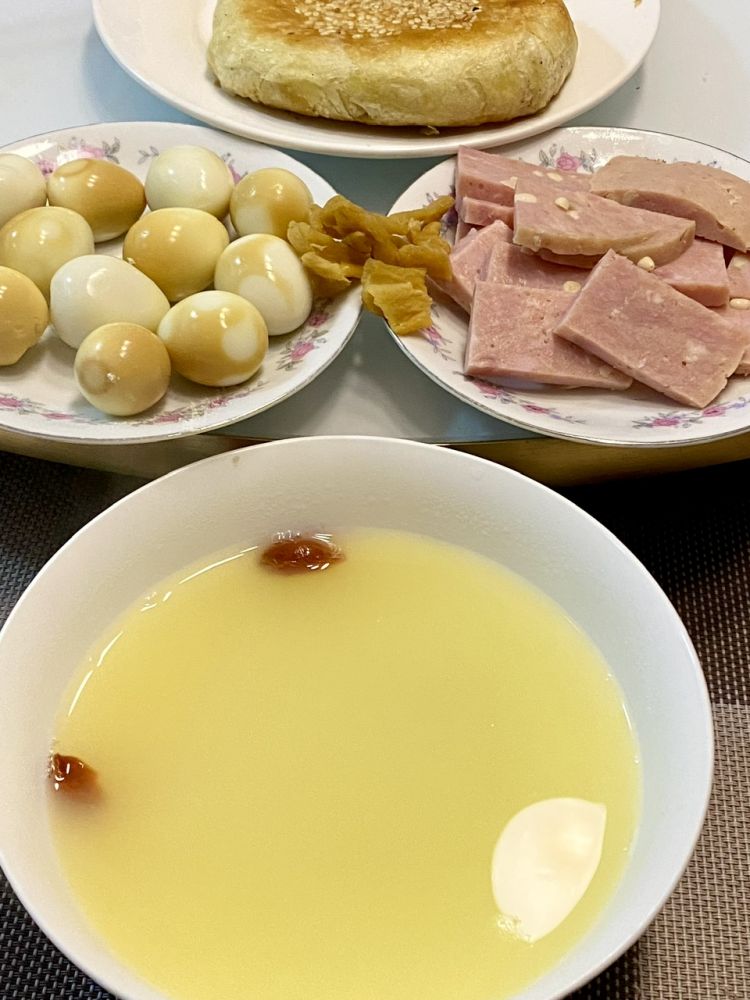 晚饭就是黄瓜、绿豆汤、每样点心尝一口。