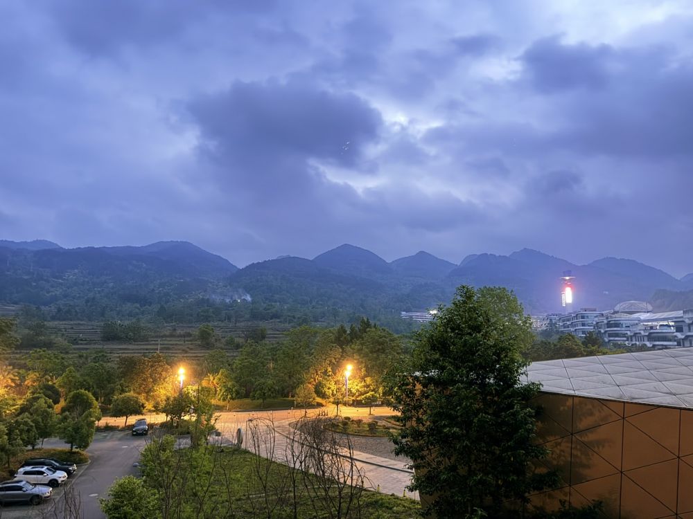 蓝调时刻,贵州的山连绵不绝,暮光中是柔和的剪影。