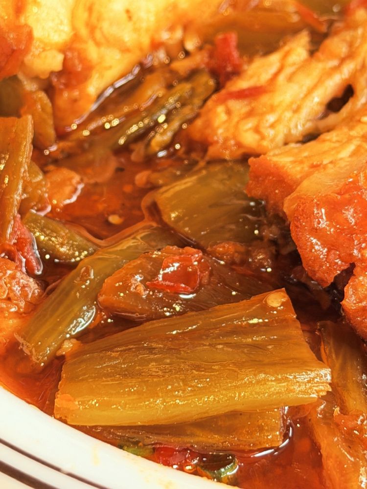那个垫扣肉的菜是腌渍的大芥菜梗。