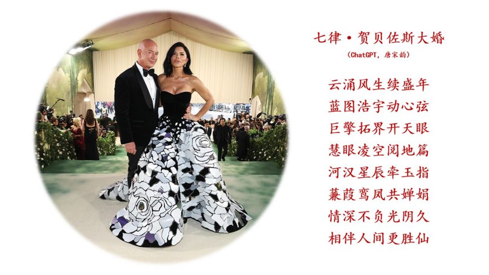 在贝秃大婚的日子里,祝他幸福美满。我让AI为他写了首七律,我作了一些修改,算是人机合作。目前AI写诗词,对仗、平仄已经不是问题,遣词造句还有一点粗糙。说实话,很快就会像下围棋,人类恐怕不是对手了。当然,文无第一,人类嘴上永远可以不服气,最后的挡箭牌就是“人是有情感的,机器是没情感的”。记得聂卫平当年说过,机器不可能下得过人,因为人是有大局观的,机器是没有大局观的。呵呵。