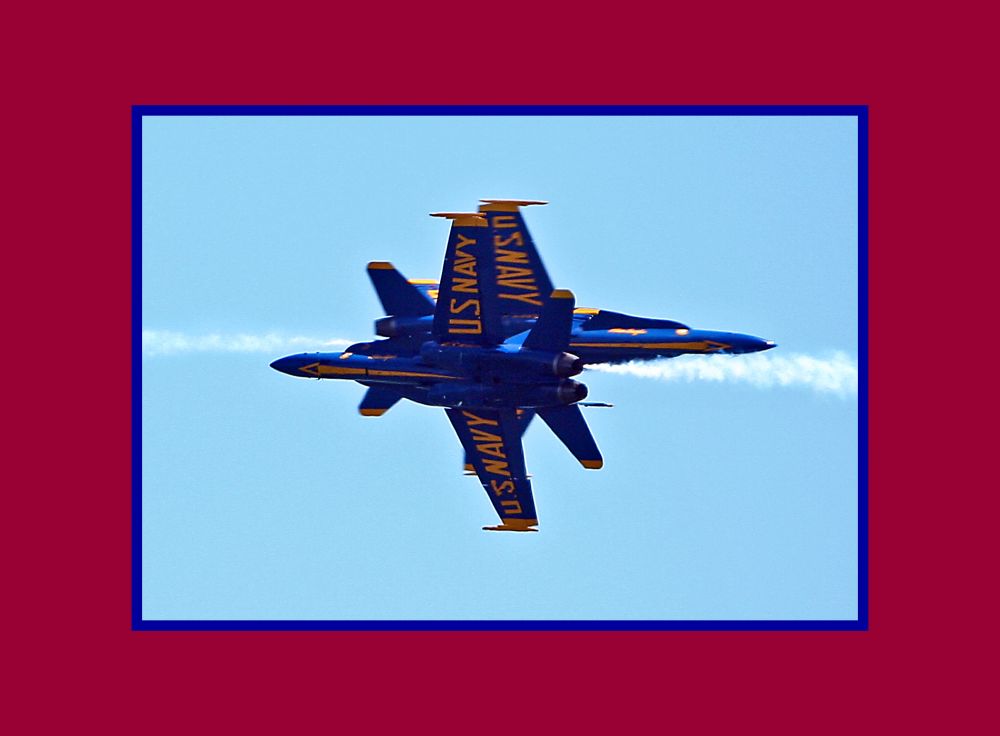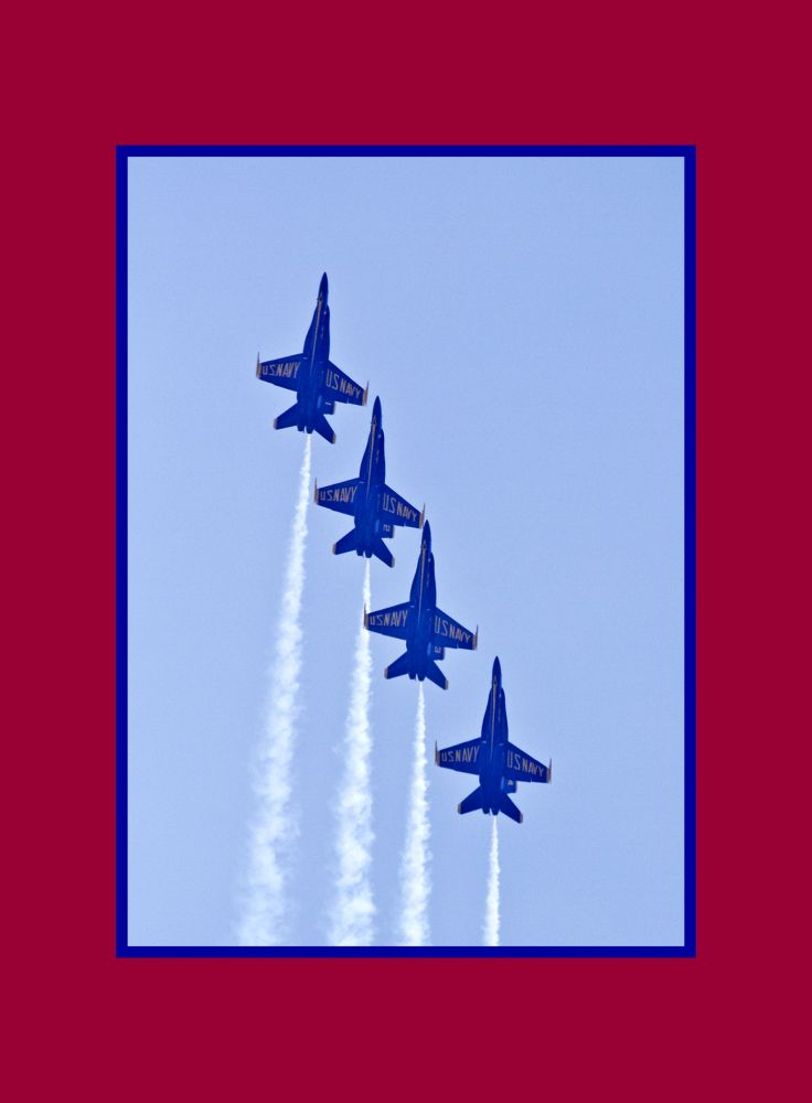 我本人非常喜欢看航空表演。刚来美国不久还不会开车,就坐着朋友的车去DC看了Thunderbirds的表演,还跟飞行员拍了合影。当然主要还是拍飞行表演。可惜那是胶卷时代,影像不在计算机里。胶卷有限,也不可能拍得太多,不像后来的数码照片,可以做到十里、甚至百里挑一。到了数码单反的时代,有两次在纽约长岛海滩看蓝天使特技表演时(我记得有一次恰逢7月4号),我带着拍鸟的镜头和一个200mm 镜头,用打飞鸟的技术去拍摄。我拍到了十几张相对满意的照片 ——
