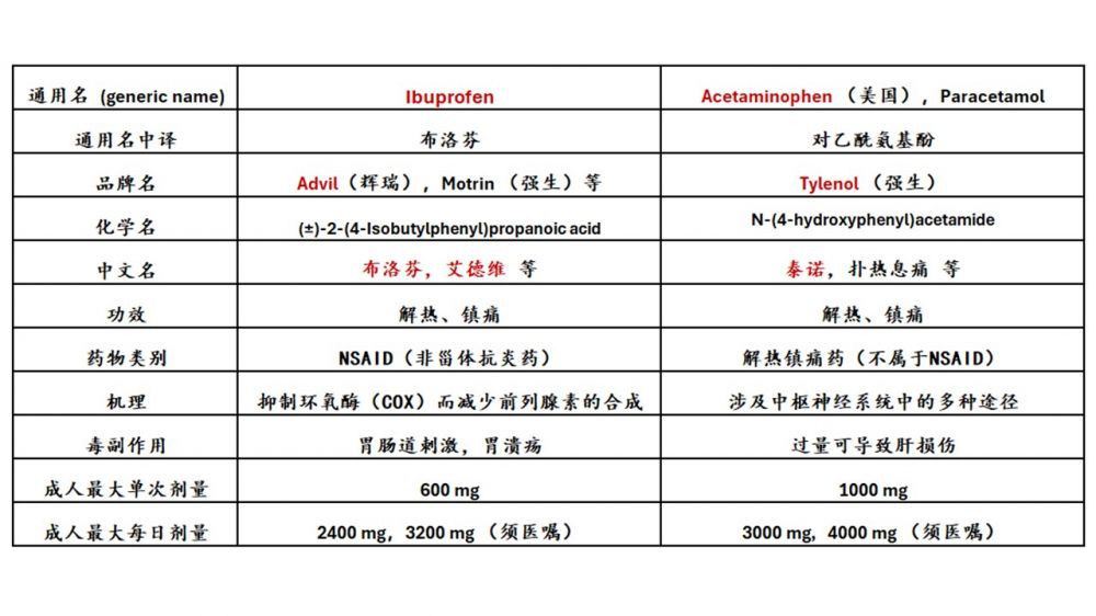 当然,over-the-counter药物也不总是安全的。比如Advil (布诺芬)对胃肠道有刺激,胃不好的人不宜使用;Tylenol(泰诺)在高剂量时有肝脏毒性,肝功能不好的人要慎用。如果要用较高的剂量进行系统镇痛,特别是两种药联合使用(原则上可以),我建议对药物不太了解的人最好还是咨询一下医生。