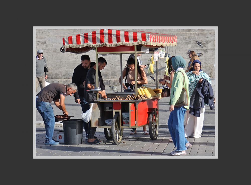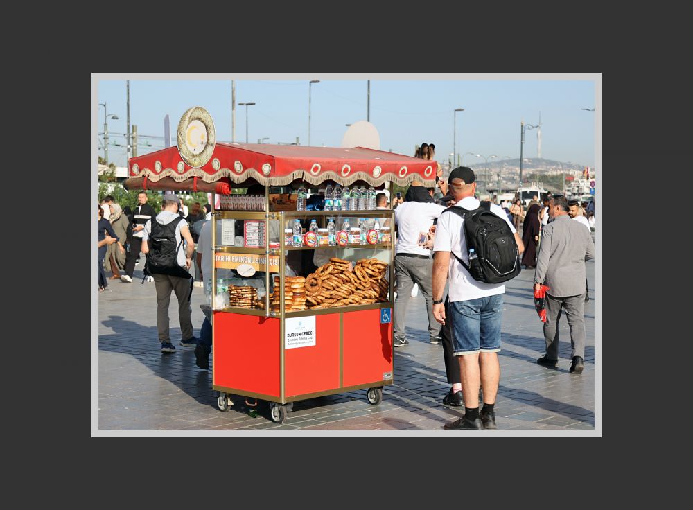 伊斯坦布尔有一个卑微但却无所不在的城市名片,那就是流动食品小摊。我估计是城市的统一规划和要求,小摊的车身都是红色,顾客与摊主间常有玻璃隔板,车顶多是红白相间的遮阳篷。