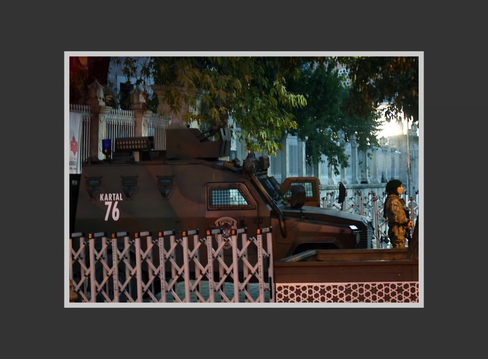 土耳其警察的一般警车看起来跟美国差不多。但另有一种很酷的警车,没有玻璃,代之以钢网。我们找当地人请教了一下,得知那是特警的车辆,是为防暴设计的。我们从交谈中得知,在各重要古迹、景点,都潜在地有大量特警在保卫,游客不一定注意得到。托普卡帕皇宫中有那么多稀世珍宝,即使凶悍的犯罪团伙也不敢动念头。最后一张照片显示的是,傍晚在索菲亚大教堂边上的一个树下,有特警在轮流值守。当时站岗的是一名戴着头巾、手握冲锋枪的女兵。