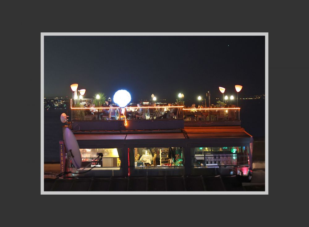 旅馆离海有两三条街(海边的太贵了),但因为是顶层,有很好的视野。海边那个餐厅,上午就忙碌起来了,当然夜间才是营业的高峰。