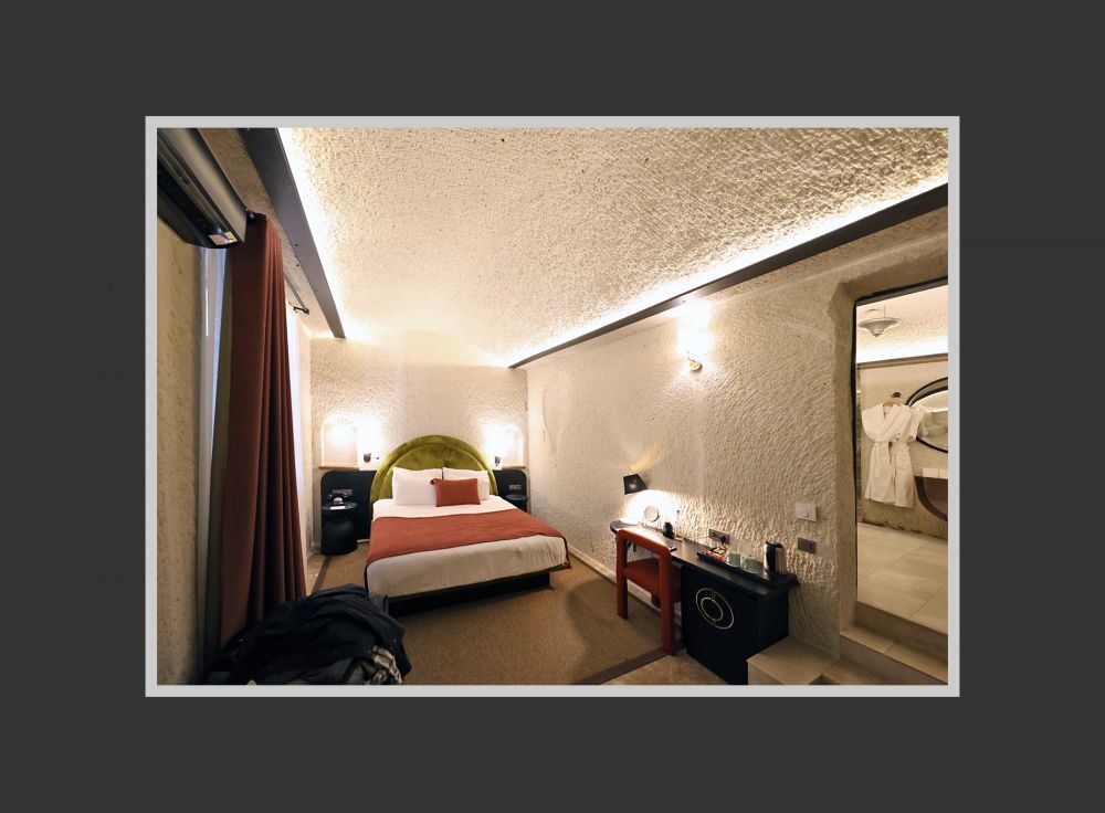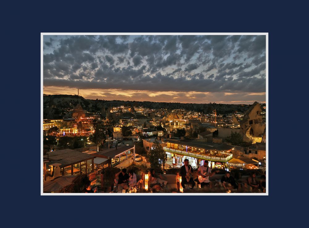 关于花钱和找旅馆,我往前面说一点,讲讲下一站土耳其的卡帕多细亚。我们住宿的是处于其中心的Goreme镇,住的是独特的“洞穴旅馆”(cave hotel),其房屋是直接在火山凝灰岩(tuff)中开凿而成的。洞穴旅馆贵一些,但不离谱,其体验独特。傍晚坐在几步之遥的旅馆露天餐厅里,看着全城灯火逐渐点亮,美不胜收。
