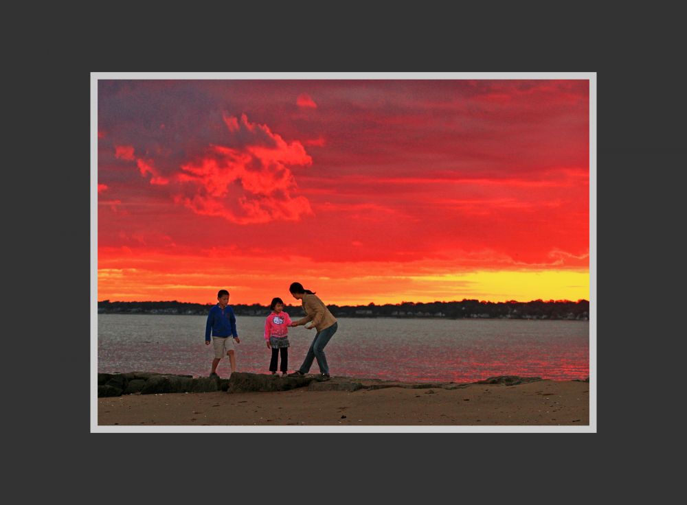 我拍人像不多,但也有记忆深刻的例子。2011年初秋的一个周末,一帮影友约好在康州的一个海滨集合,拍摄某种鸟的迁徙(细节忘了)。那天我太太和孩子也跟着一块儿去了。两个孩子看着长枪短炮,玩着望远镜,一时间很兴奋。大人们在和煦的阳光下吃着野餐、聊着天,也颇有兴致。然而遗憾的是,几个小时过去了,迁徙的鸟连影子也没见着。下午三、四点的时候,天气变了,一片片乌云压过来。影友们陆续都离去了。