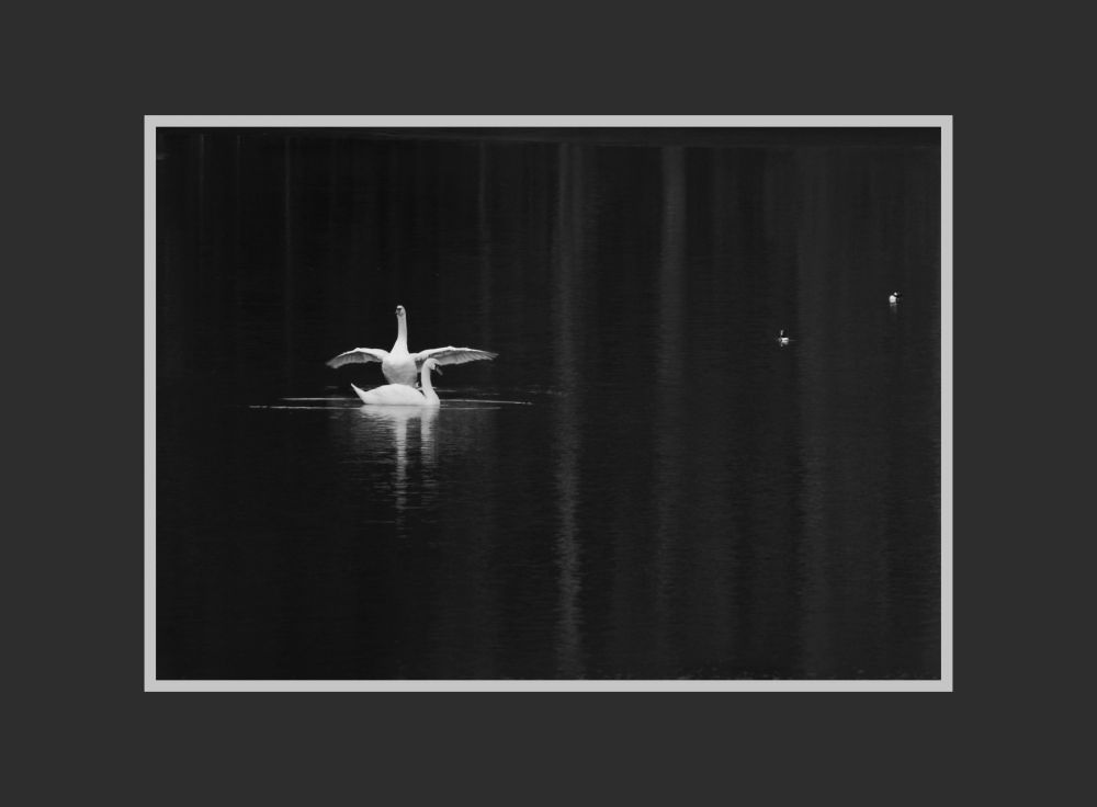 下面这张照片,大约摄于15年前的一个夏日。当时我只身在纽约地区工作,三年“单身”,周末经常拿着相机出去“打鸟”。那个周末我运气特别差,拍了几百张(拍鸟经常是每秒10张速拍),没有一张像样的。已经是星期天晚上近8点,天色暗下来了,我悻悻地往停车场走。路过小湖时,在暗淡的湖面上,有两只天鹅在游弋。这种 mute swan 很常见,我早已拍过很多,一般情况下不值得再关注了。然而在那个时刻,它们白色的羽毛是唯一尚能正常曝光的拍摄对象,而它们与湖面的巨大反差也很罕见。于是我停下来,把长镜头对着它们,在取景框里观察他们的一举一动。我就这样呆了至少十几分钟。突然间,有一只天鹅扇起了翅膀,我赶忙按快门拍下一串。我随后大致回放了一下,确信这其中至少有一张是满意的。于是立马儿打道回府。我煮了一包冻饺子,倒出半碗油炸花生米,斟上一杯二锅头,心情好极了……