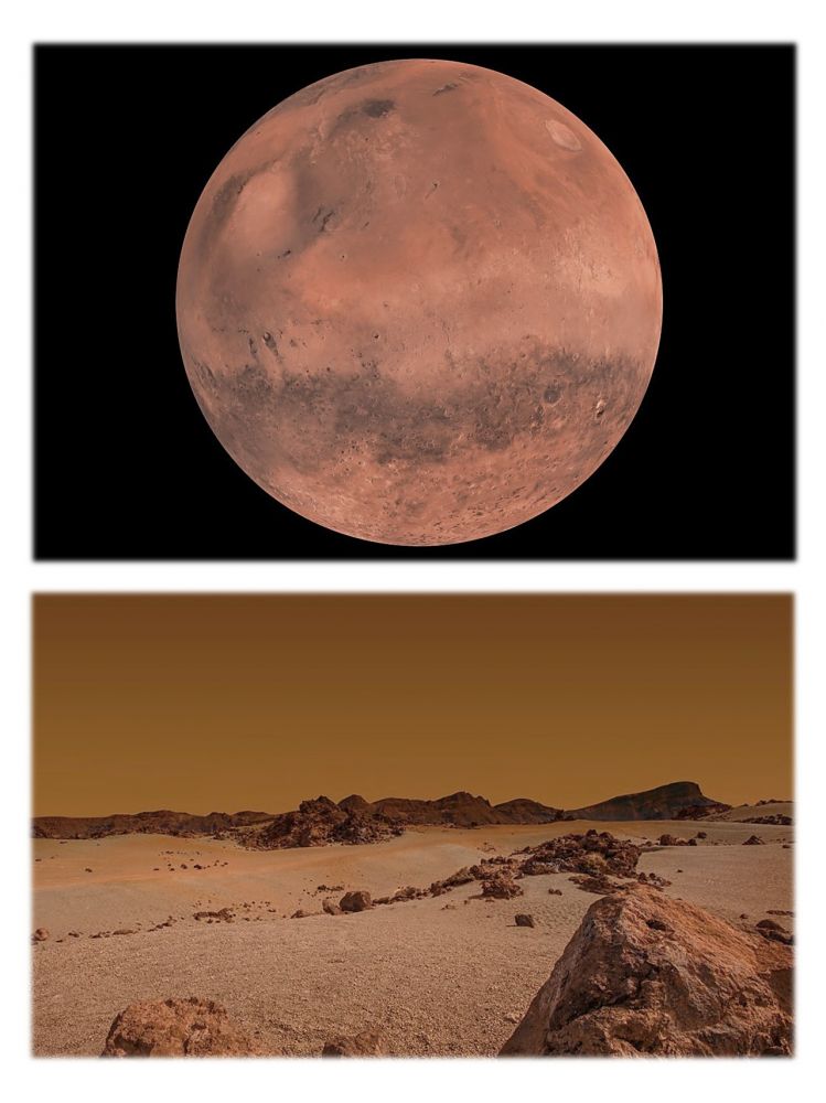 火星是太阳系八大行星中距离太阳第四近的行星,居地球和木星之间。它的直径是地球的53%,表面重力加速度为0.38 g。古罗马神话中的“战神”,也被称为“红色星球”。其橘红色外表是因为地表土壤富含氧化铁。