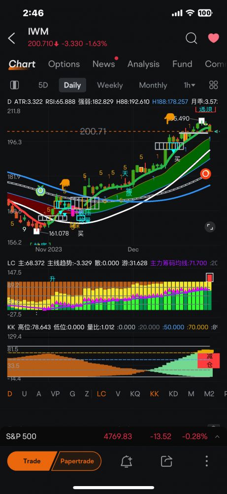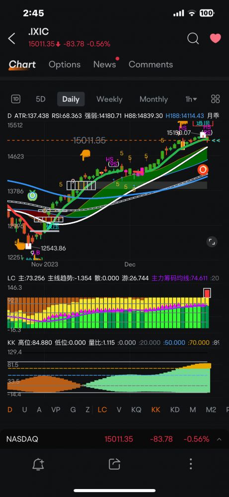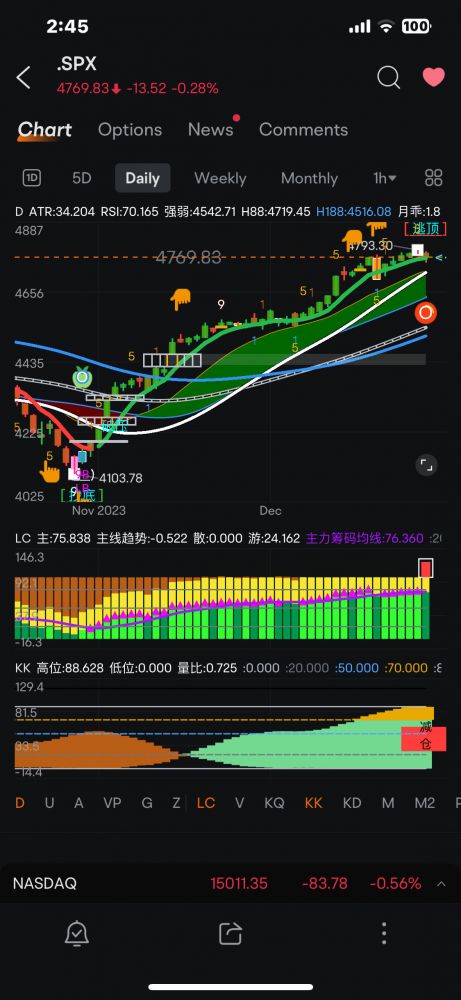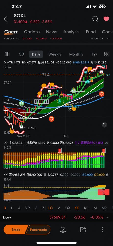 目前大部分股票、尤其大部分的技术股,已达高点。虽然还有些上升空间,但已达随时下调的区域。何时下调、调多少由市场决定,但是我们做波段的,只在转弯的时候(K线变色的时候、出信号如逃顶或抄底的时候)操作,应该是胜率高高 !!