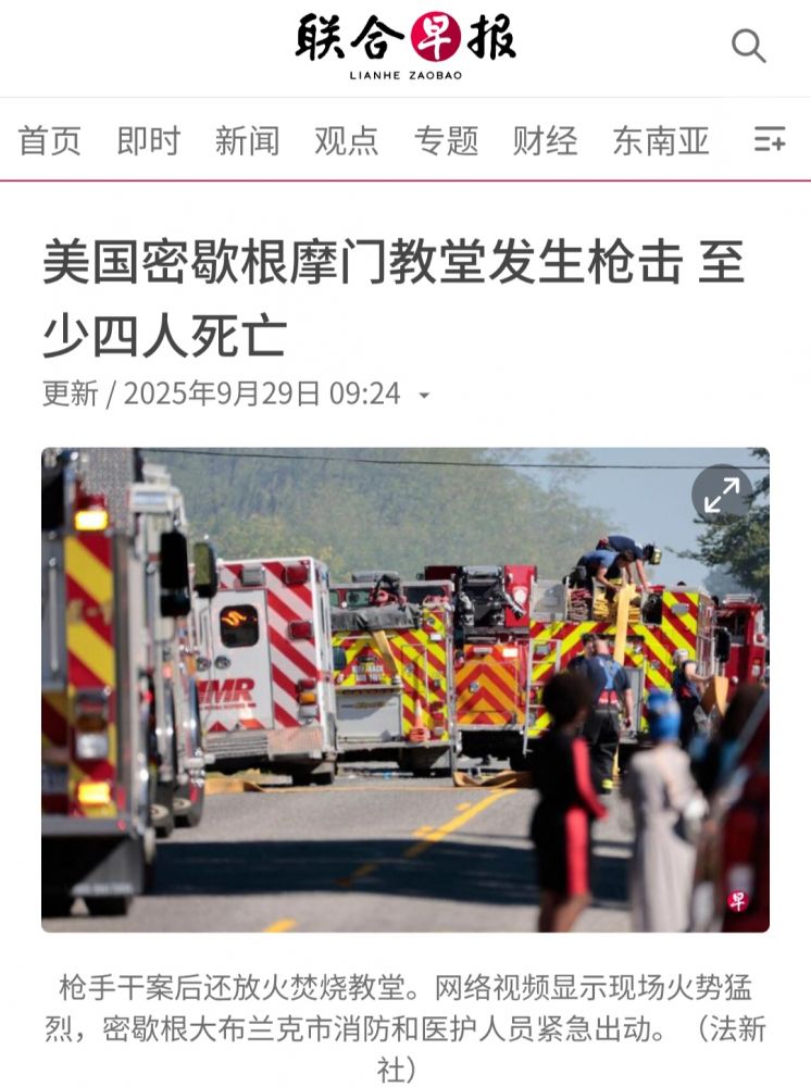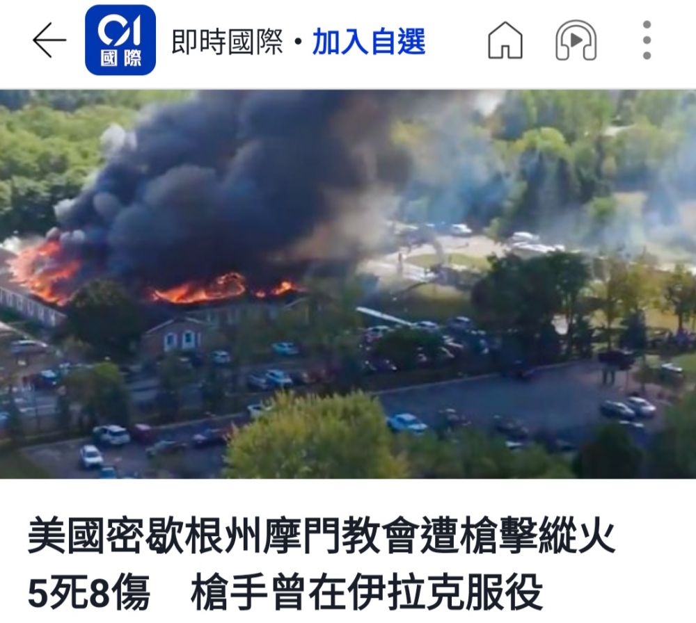 今早看到香港TVB新聞報導,說美國教堂又發生一起槍擊事件。