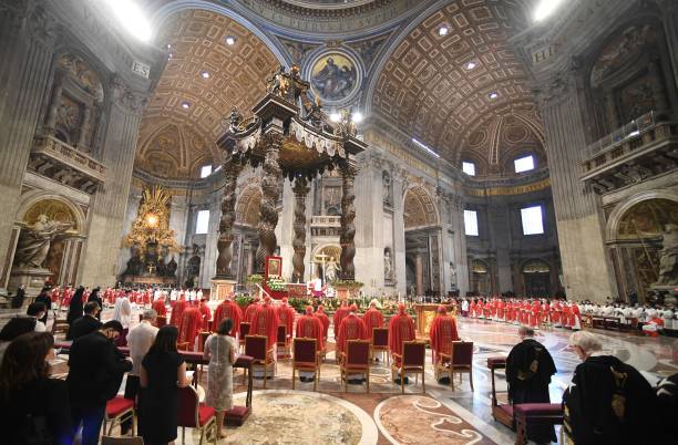 站在大教堂的中央,你会感觉一个直径42米,顶高为138米,由米开朗基罗设计的穹顶,滤泄进来的自然光线,使得教皇圣坛、雕像和壁画形象显得高大宏伟、金碧辉煌。然而,穹顶之下的人群却显得那么的猥琐、渺小不堪。