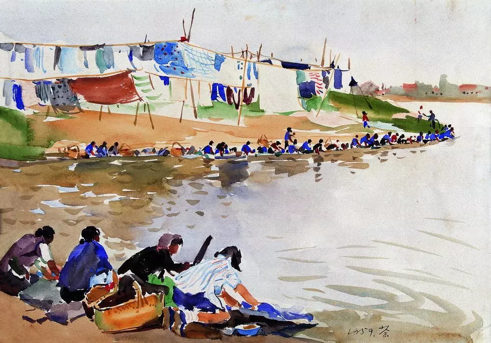 原本水彩画技法源于西方,擅长表现西景。然而,吴氏在表现东方的作品上,却大放异彩。这也许正是吴氏作品卓尔不群,独到魅力之处吧。