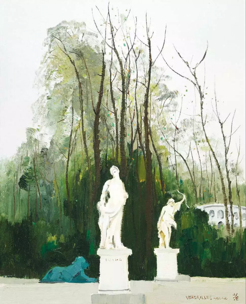 毫无疑问,吴氏在水彩色彩的处理上达到随心所欲的地步。然而,吴氏以油画表现形式的雕塑公园写生在色彩搭配方面就略显不尽人意了: