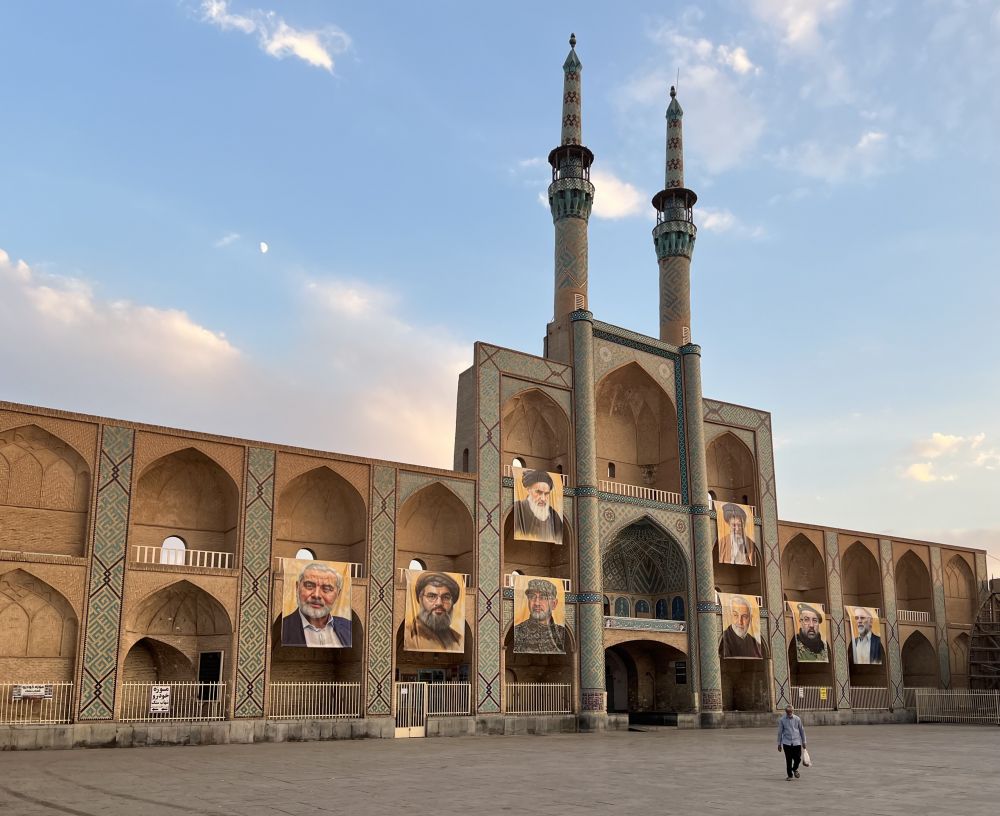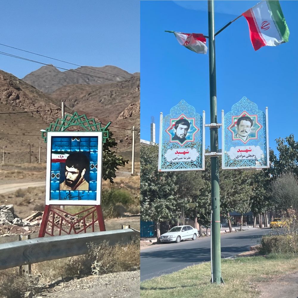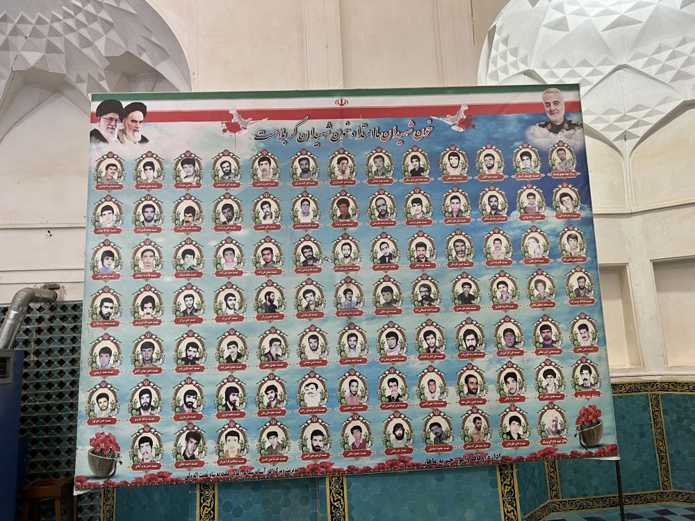 这时邻居伊拉克看到霍梅尼大开杀戒,伊朗内乱成一团,于是在西方国家的支持下趁机进攻伊朗想多占点地盘。伊拉克有钱有西方的先进武器, 但是伊朗有更多的追随宗教领袖的年轻人. 两国鏖战八年, 死伤惨重,劳民伤财,国运枯竭,最后双方不得不停战。而我们一路上看到的便是各家乡的挂像便是纪念这些阵亡的年轻人。