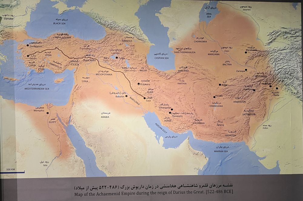 耐人寻味的是大约在三百年后,发迹于中国西部的秦始皇扫六合统一中原后采取了与波斯帝国非常相似的国家治理模式, 如实行郡县制管理,建设驿道和书同文车同轨的政策。最近的遗传学DNA分析表明秦始皇陵周围的墓葬坑里有西方白种人的遗骨,此为后话。
